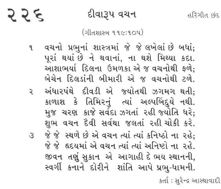 24 Jan Bhajan Sangrah Song 226 Posted at 13:13h in All, Bhajansangrah, Bhajansangrah Gujarati, Bible Song, Gujarati by admin 0 Comments Bhajan Sangrah Song 226 Share on FacebookTweetFollow usSave Related Posts Are you upset in the churchUnderstanding Trinity Sunday: The Significance and Spiritual Insights Behind the Holy TrinityUnlock Your Musical Journey: Explore Free Online Piano Music for BeginnersBhajan Sangrah Song 291 Bhajan Sangrah Song 442Sea of Galilee Turns RedThe Significance of Pentecost: Unveiling Its Spiritual Impact and Modern RelevanceBhajan Sangrah Song 486 Richard Christian richardsanchristian@gmail.com