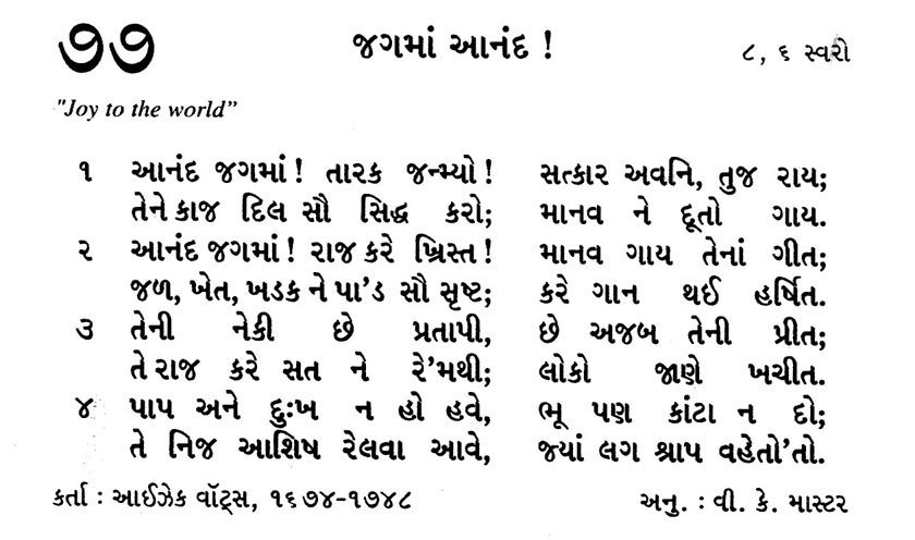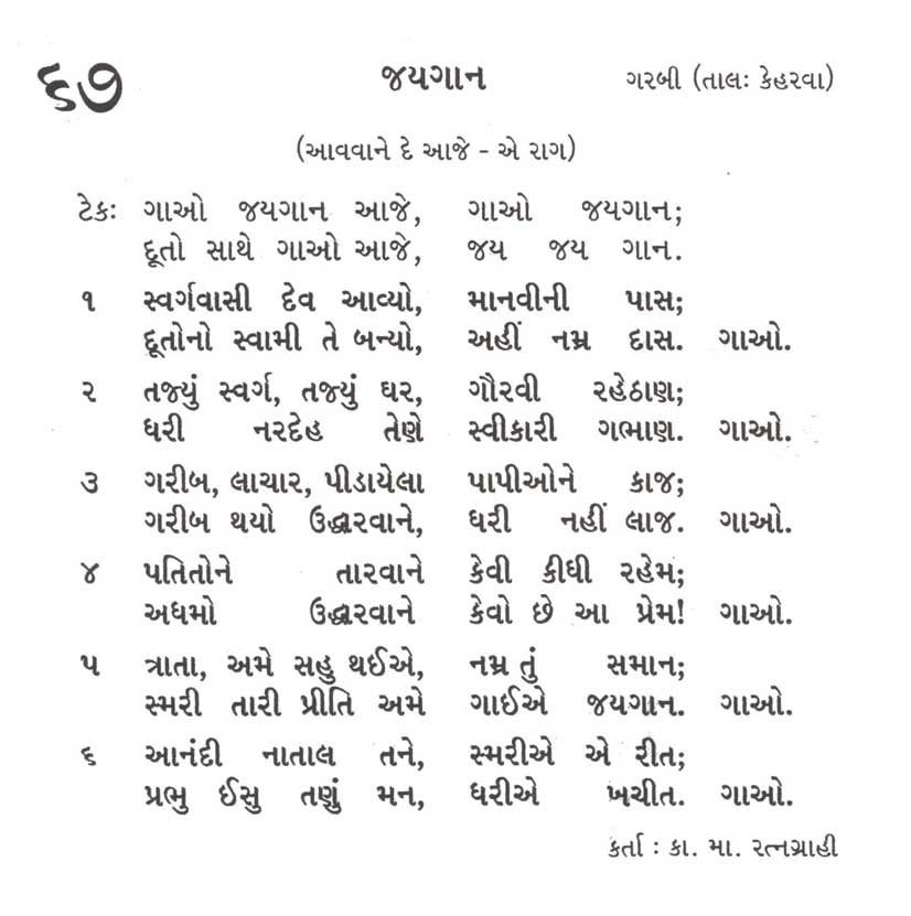 Aanand jagmaa ! Raaj kare khrist ! Maanav gaay tenaa geet;