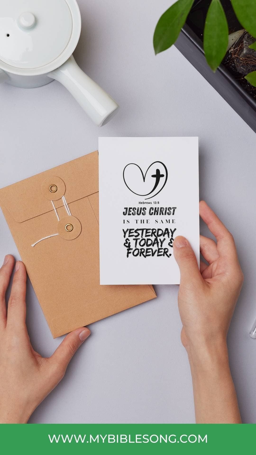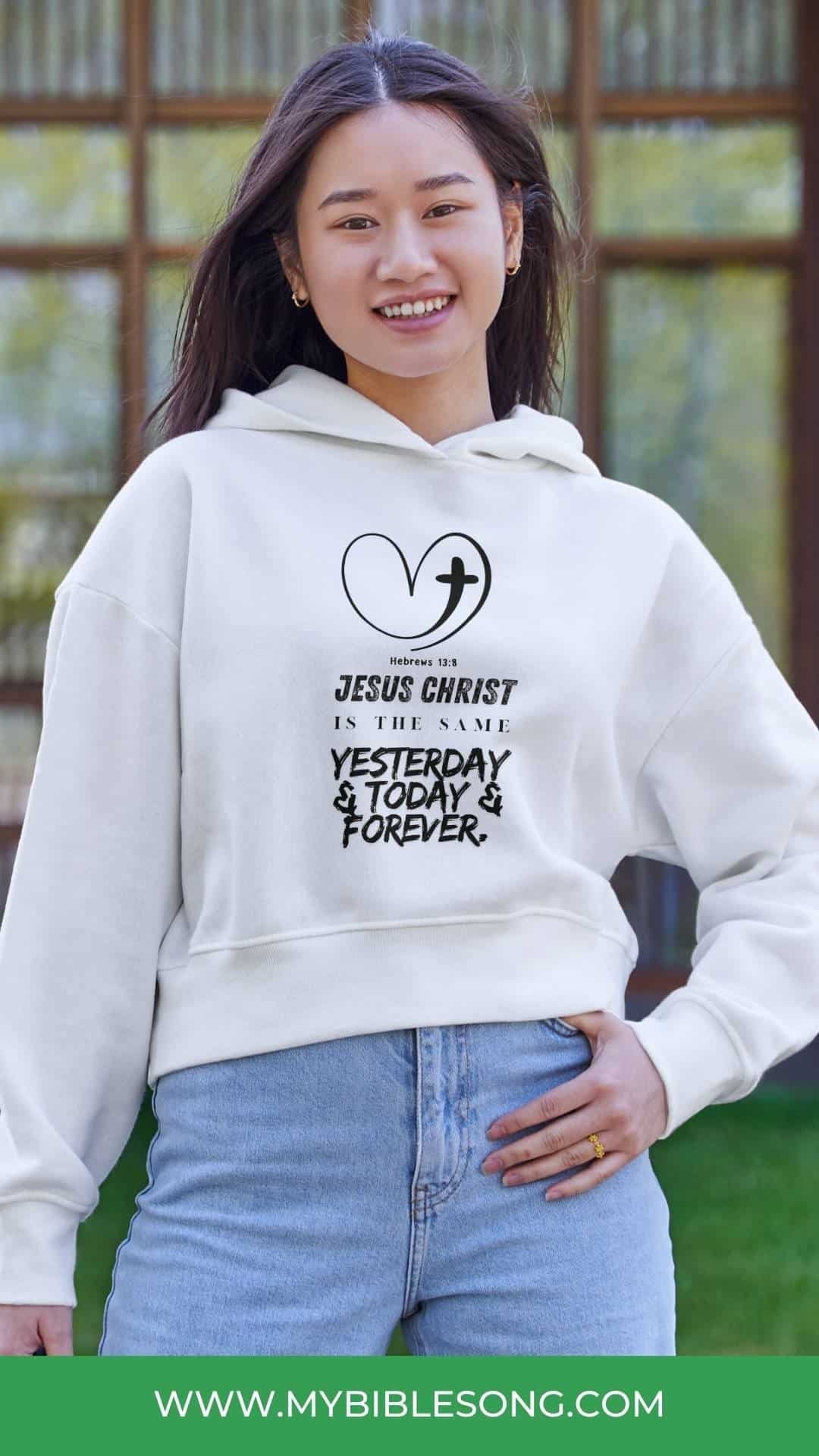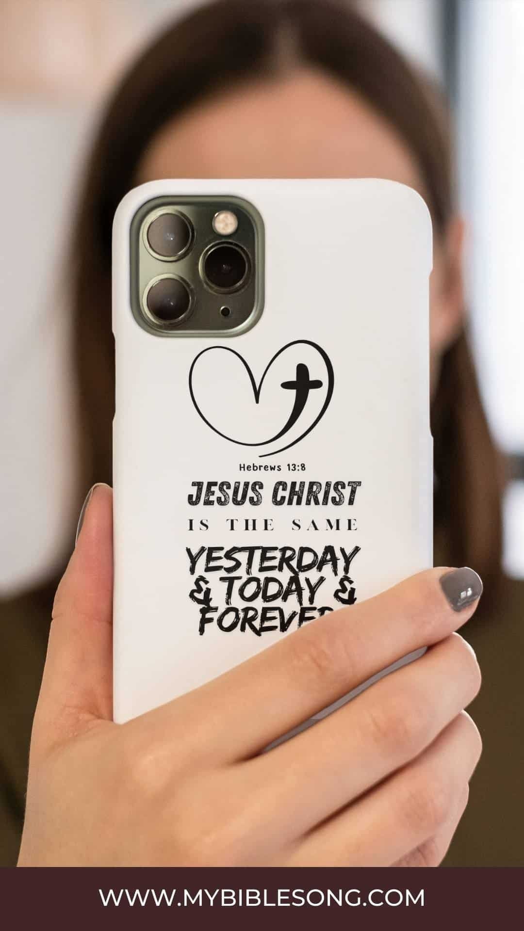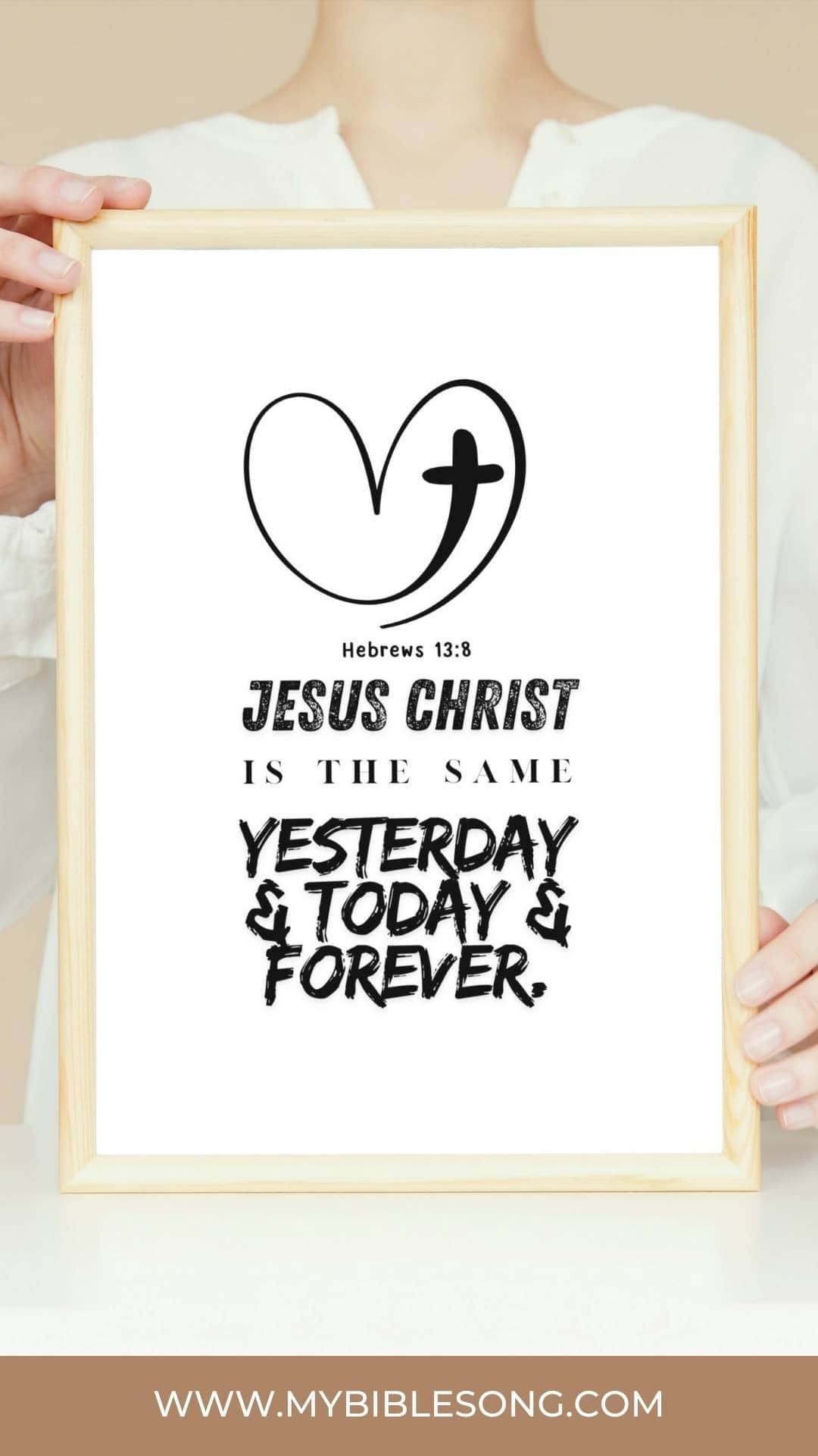 Hebrews 13:8 Inspirational Digital Design. This high-res design has the powerful verse: “Jesus Christ is the same yesterday and today and forever.” — Hebrews 13:8