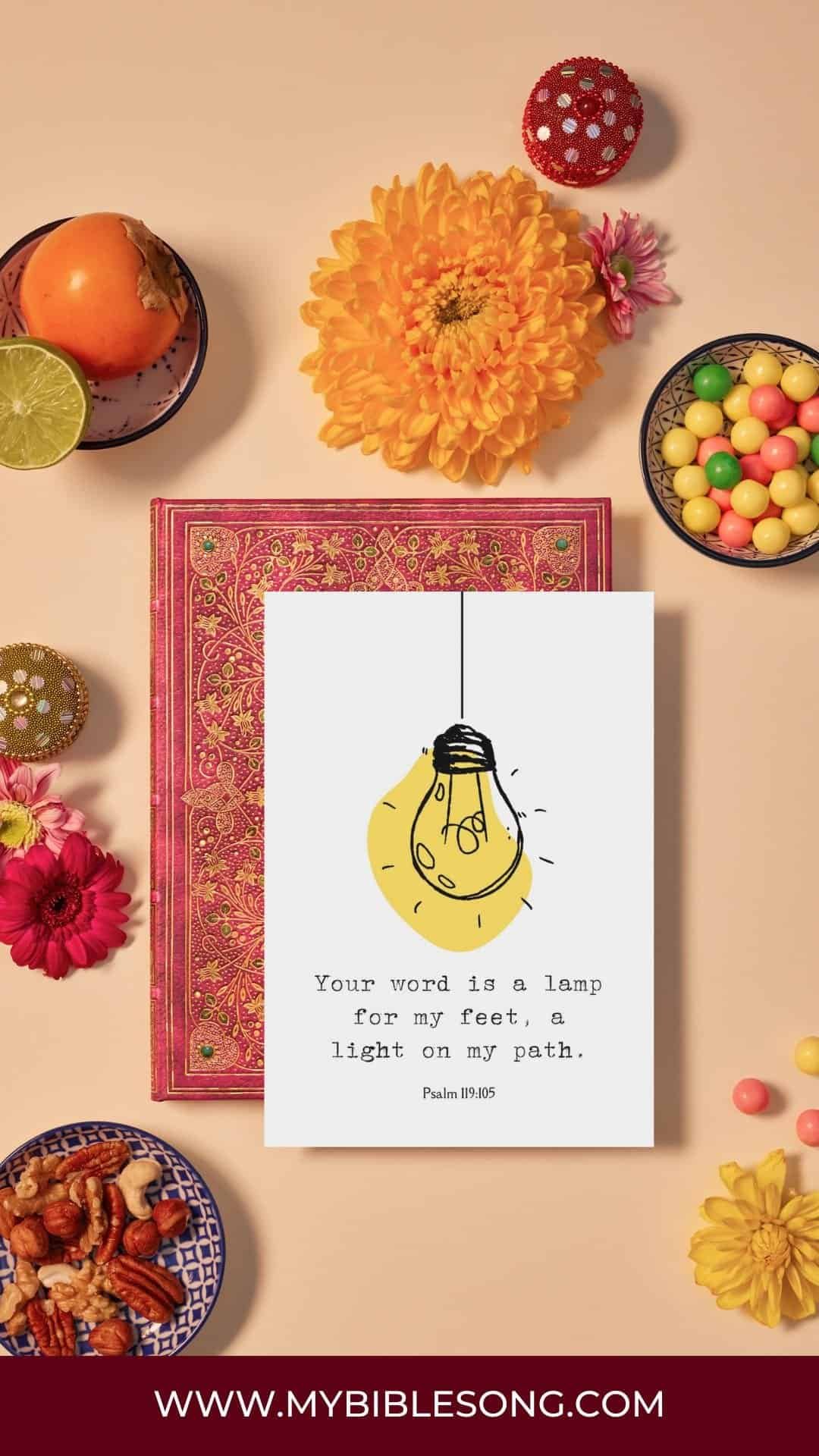 The phrase, “Your word is a lamp for my feet, a light on my path,” is beautiful. It reminds us that God’s word is a guiding light on our winding journey through life.